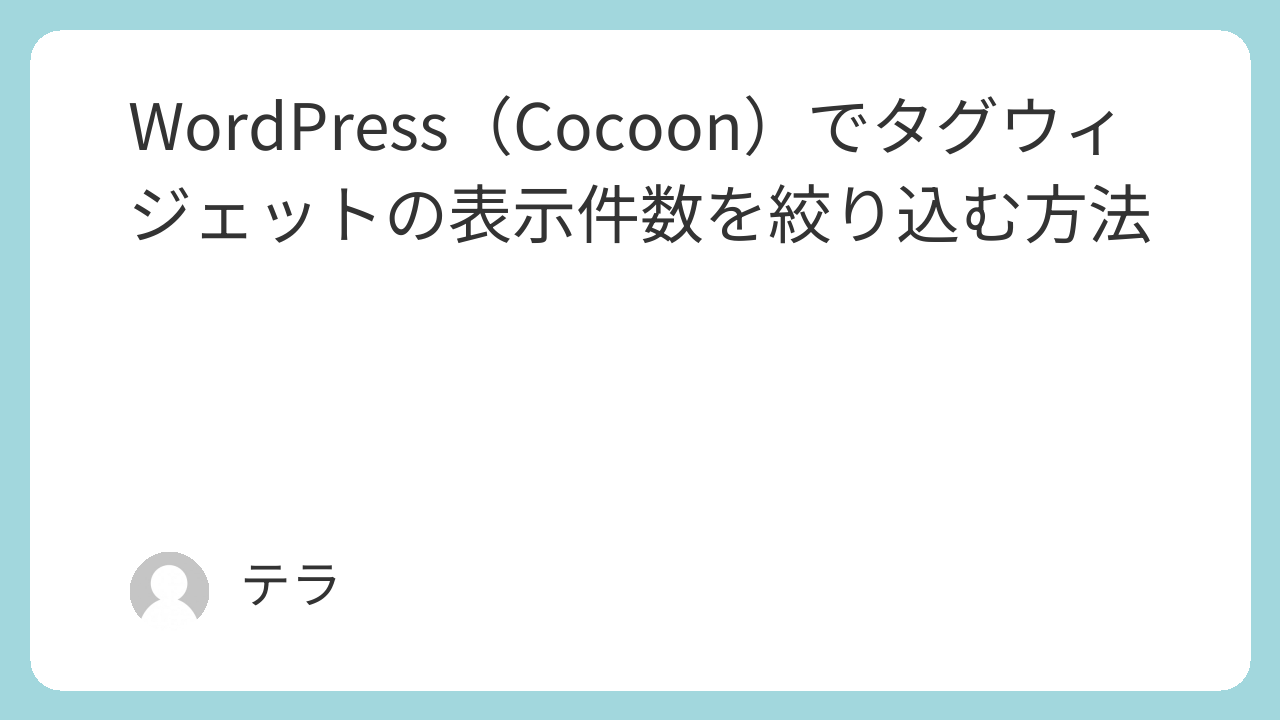 WordPressのタグウィジェットをサイドバーに設置していると、「投稿数が少ないタグまで表示されて見た目がごちゃごちゃする」という問題が起きがちです。 本記事では、Cocoonテーマ環境で、登録数が少ないタグ(●件以下)を非表示にする方法を3つ紹介します。