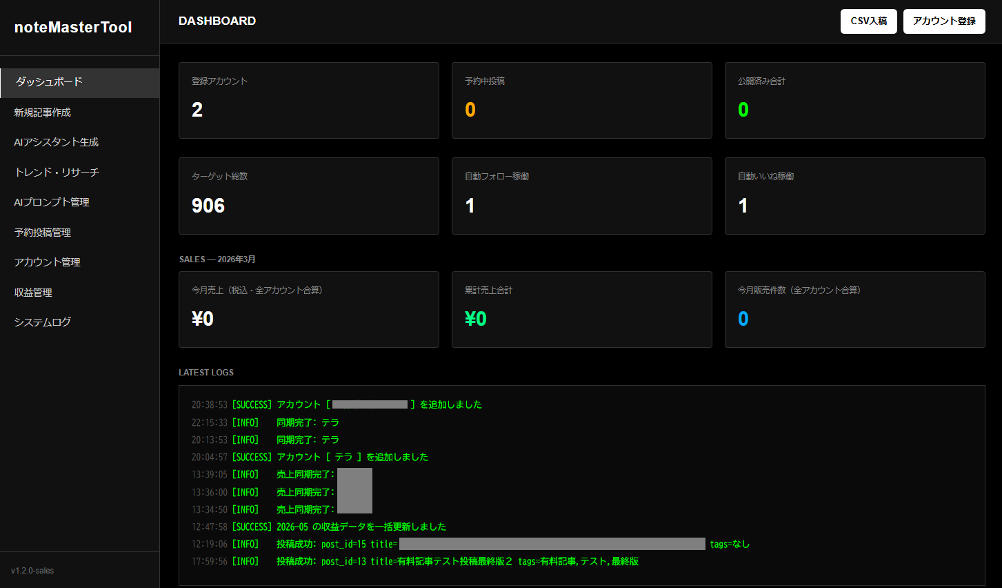 noteの標準機能にはない「マルチアカウント管理」を実装しています。
